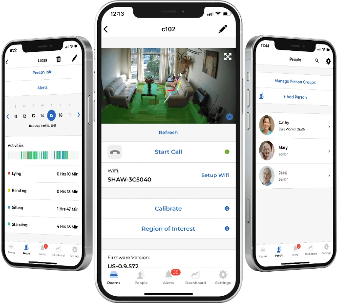 To protect privacy, an onboard AI chip converts people into stick figures before transmission. Sentinare is ideal for senior care, medical alerts, remote patient and therapeutic monitoring, and supporting individuals with IDDs.